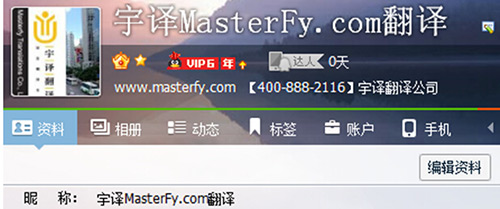 而宇譯翻譯公司官網上的QQ年限和等級都很高,而且都是年費會員(標紅加V尊顯)。